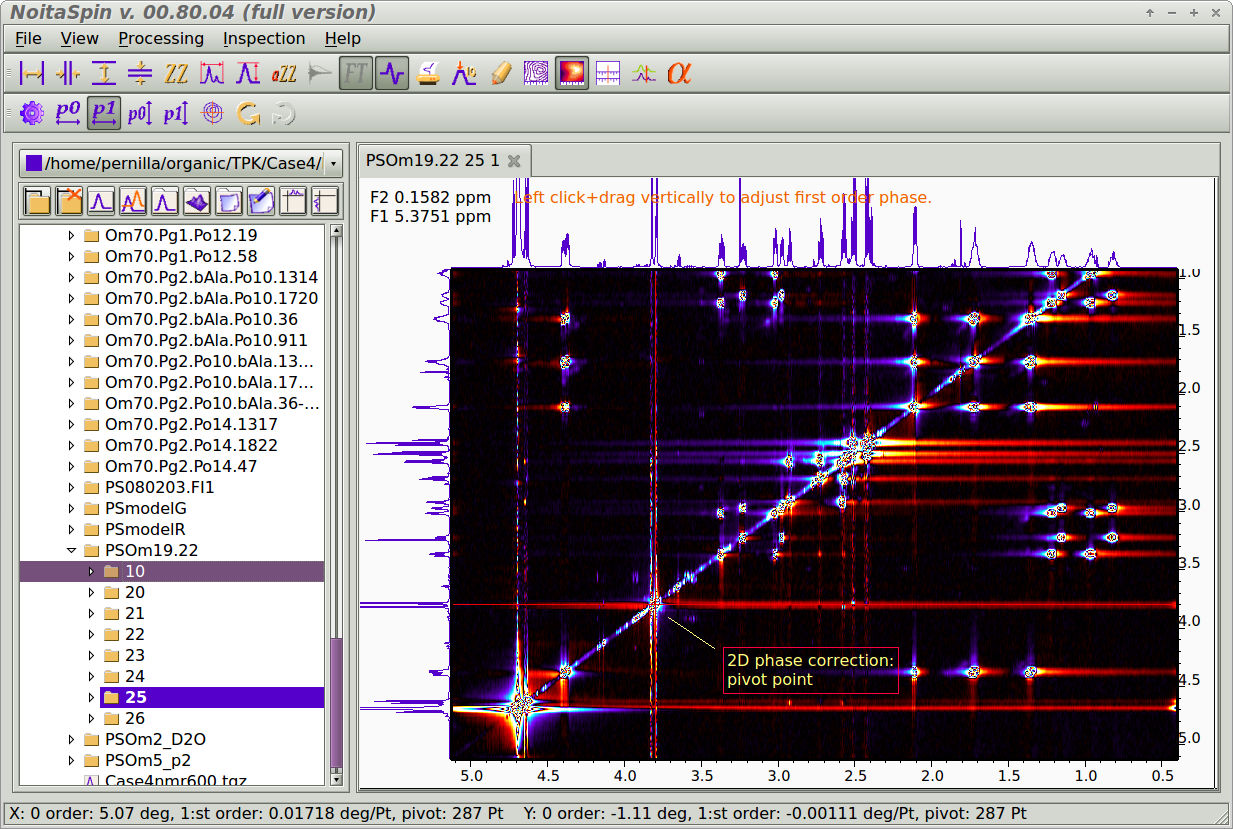 2D spectrum with corresponding 1D spectra, phase correction mode: